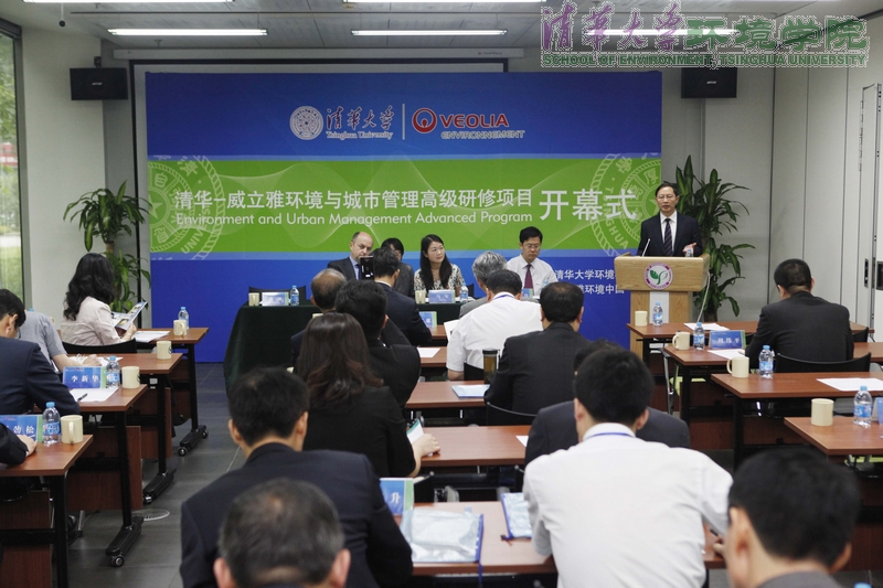 清华必赢电子游戏网站7月1日电 (通讯员 高晓娟) 2013年度清华-威立雅“环境与城市管理高级研修项目”(Tsinghua-Veolia Environment and Urban Management Advanced Program, 简称EUMAP)于6月29日上午在必赢电子游戏网站环境节能楼举行开幕仪式。必赢电子游戏网站院长余刚教授、必赢电子游戏网站科研院海外项目部马军主任、威立雅环境服务执行副总裁戴伯乐(Pascal DECARY)先生出席开幕式并致辞。同时出席开幕式的还有威立雅集团部分代表,和来自地方政府、市政环保、媒体等单位的18名学员。开幕式由必赢电子游戏网站院长助理王玉珏副教授主持。