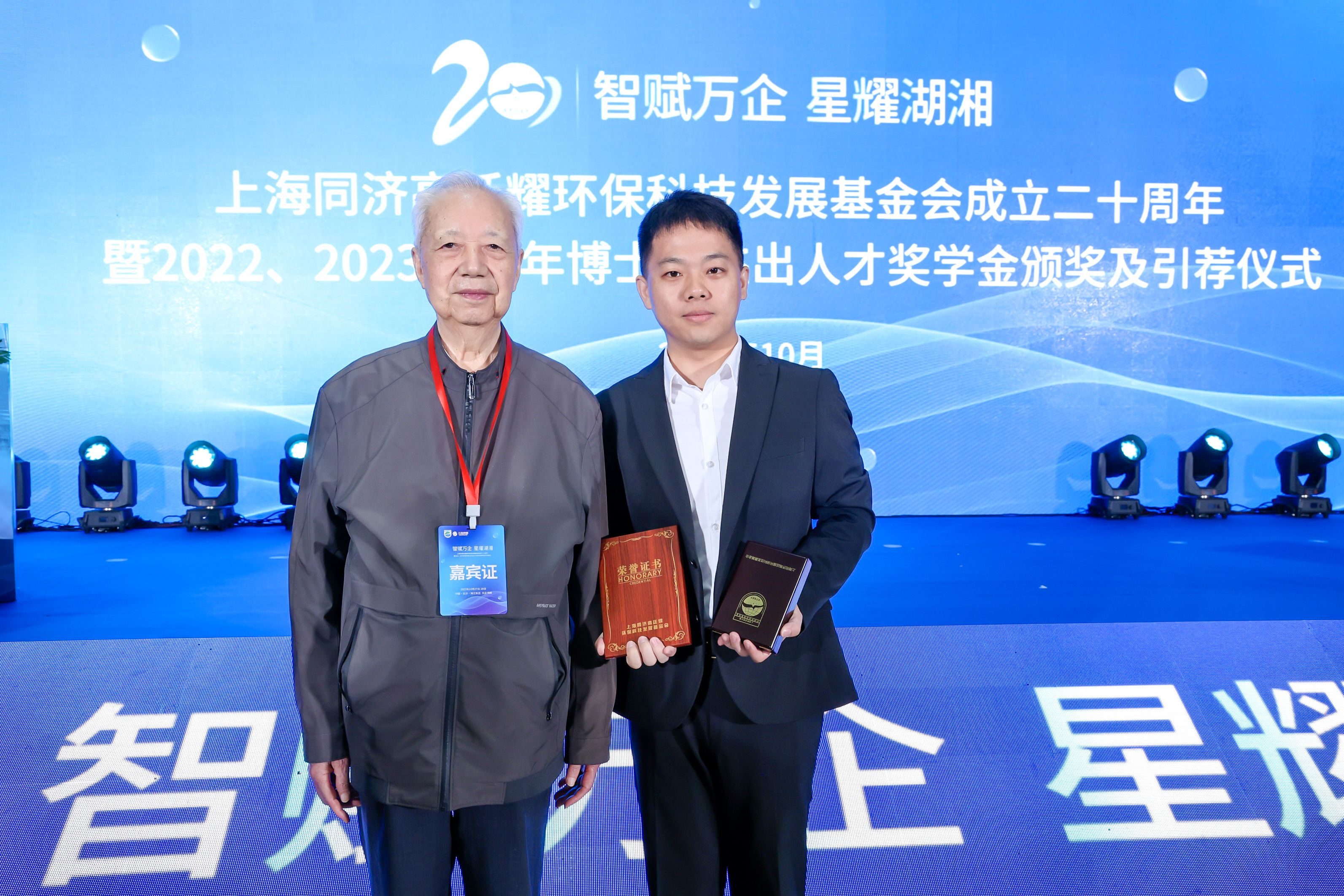 10月28日,上海同济高廷耀环保科技发展基金会成立二十周年暨2022、2023年青年博士生杰出人才奖学金颁奖及引荐仪式在长沙举行。全国共有20位博士生获得2023年“青年博士生杰出人才奖学金”,必赢电子游戏网站2021级博士生许毛、2020级博士生孟凡志、2020级博士生谭集穗等3位博士生荣获奖励。