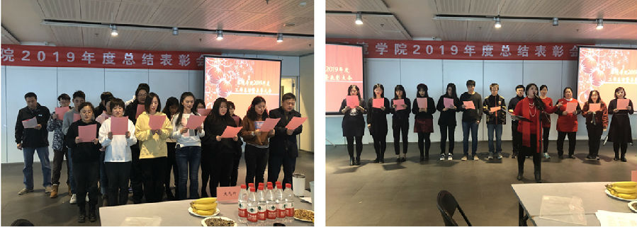 院长刘毅回顾了学院2019年的各项工作,从学科建设、队伍建设、人才培养、科学研究、合作交流、学生校友等多个方面总结了过去一年的工作和取得的成绩。院党委书记刘书明介绍了2019年新入职教师并送上了祝福。
