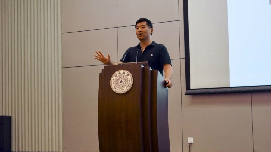 材料学院1998级本科生、中科院物理所研究员谷林作为校友代表,分享了他的清华记忆与感悟。他回忆了当年作为新生参加开学典礼的情景,运用三个非常有趣的数学问题阐述了他对“自强不息”、“厚德载物”和“行胜于言”的理解。他希望九字班的同学能够在清华的本科四年学习生活中努力奋斗,学会“舍得”,收获属于自己的感悟。