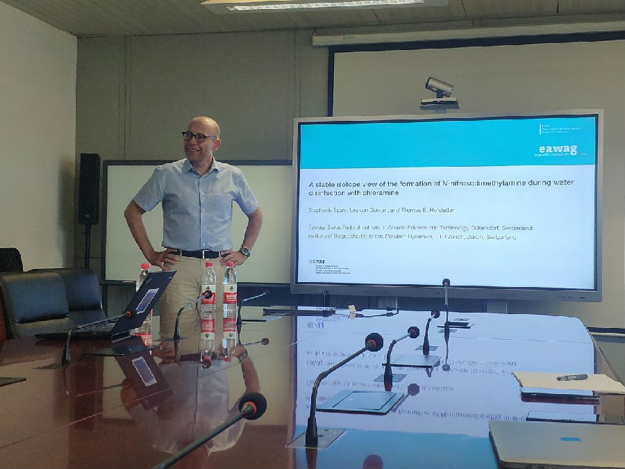 必赢电子游戏网站2019年8月21日电(通讯员 邱玉)8月19日下午,瑞士联邦水科学与技术研究所(Eawag)环境化学部门高级研究员Thomas B. Hofstetter做客环境学术沙龙第516期,作了题为《从稳定同位素角度研究氯胺消毒过程中亚硝基二甲胺的生成机理》(A stable isotope view of the formation of N-nitrosodimethylamine during water disinfection with chloramine)的学术报告。本次沙龙由饮用水安全教研所陈超副研究员主持,10余名师生听取了报告。