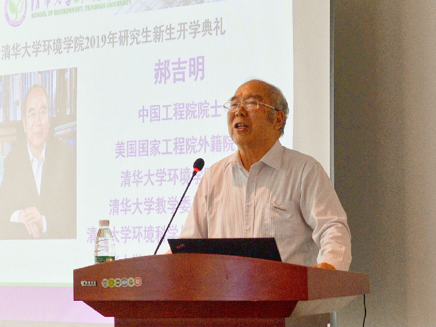 典礼最后,院长贺克斌表达了对新生的寄语,对同学们的到来表示欢迎。他在讲话中,首先希望同学们培养“责任心”,积极为环境保护事业做出贡献;其次强调同学们要具备“交融心”,学会在团队中与他人合作,注重不同学科之间的交叉与融合;最后,他希望大家能够保持“平常心”,发现自身的优点,坚持并发扬清华“为祖国健康工作五十年”的精神。