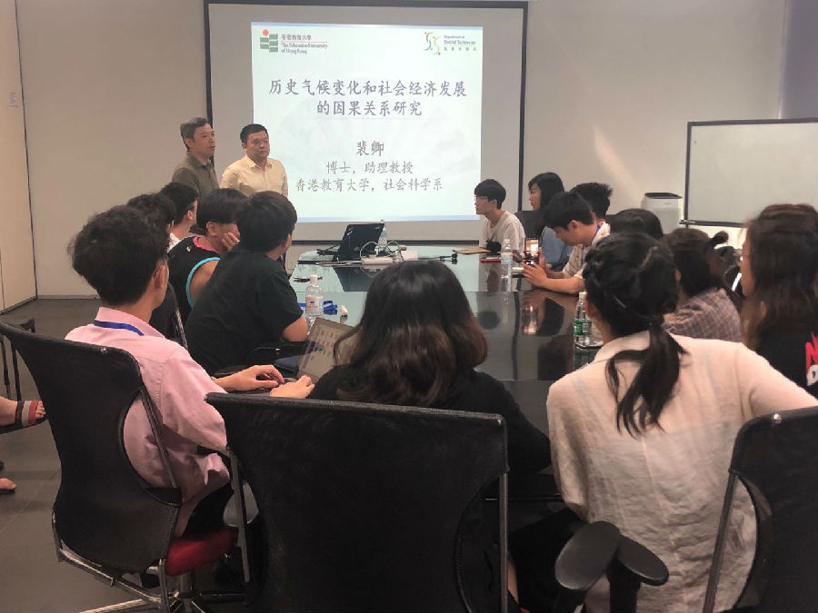 裴卿博士首先阐明了历史气候变化研究所关注的范围和尺度,并指出研究气候变冷或变干对社会经济活动影响的理论价值。随后,裴卿博士对历史气候变化研究的三个阶段展开了详细介绍。第一阶段研究重点关注古气候重建和个别社会文明事件研究;第二阶段研究开始关注历史时期,并引入了定量研究方法;第三阶段研究试图系统地探究气候变化与社会经济发展之间的因果关系,提出了因果理论模型和方法,以及尺度理论与方法。接下来,裴卿博士介绍了当前研究的主要发现,包括:气候变化与农业价格的联系,气候变化与社会动乱的循环关系以及中欧气候变化对于农业经济的影响差异。最后,裴卿博士从环境人文主义、历史分析与地理尺度结合、历史大数据与定量历史研究、重新审视马尔萨斯理论等多个角度探讨了历史气候变化的未来研究方向。讲座结束后,在场师生踊跃提问,气氛热烈,与裴卿博士进行了深入的沟通与交流。