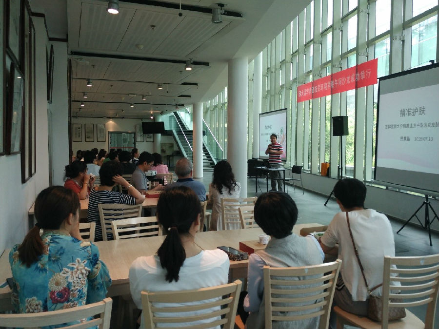 必赢电子游戏网站2019年7月11日电(通讯员 赵宇)7月10日中午,必赢电子游戏网站工会邀请北京中医药学会医疗美容专委会青委组织了一场科普宣教的午间沙龙讲座活动。首都医科大学附属北京中医医院皮肤科副主任、主任医师曲剑华,首都医科大学附属北京中医医院吕景晶医师和广安门医院杨佼医师应邀做了关于“常见色斑的防治”和“精准护肤”的讲座。吕医师通过《黄帝内经》等中国古代医学典籍向大家深入浅出地介绍了中医护肤理念;杨医师根据自己多年的从医经验,将常见色斑及治疗手段进行了展示,同时针对色斑形成的原因对日常防护进行了科普知识。本次沙龙近50名会员参加本次工会活动。讲座结束后,在场老师就讲座内容与三位医师进行了深入的探讨与交流。