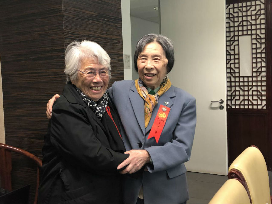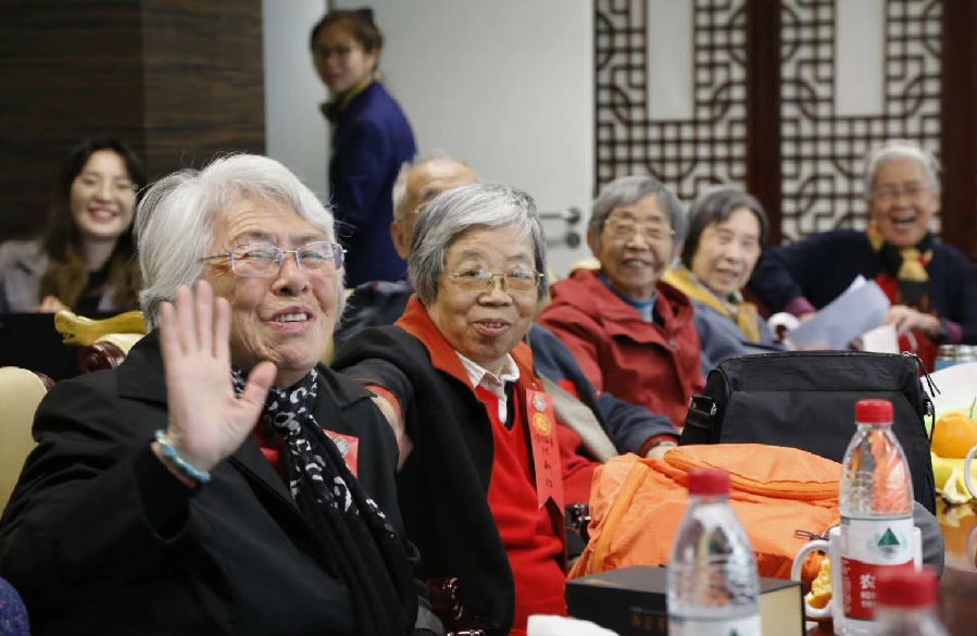 座谈会前,老校友们佩戴着记录着毕业与姓名的红条,在赠予学校和学院的礼物上纷纷留下自己的签名。60多年的老友见面,回忆着许久未出现在脑海里的姓名,在对方念出姓氏的那一刻,颤巍巍地握手拥抱,搀扶着落座,诉说着彼此的生活和思念。