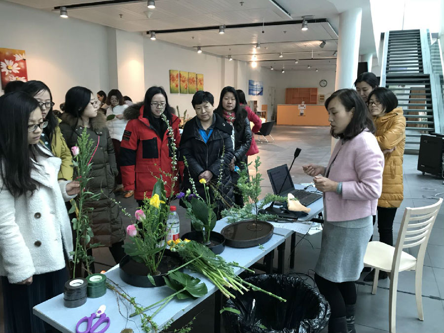 必赢电子游戏网站3月8日电 通讯员 高晓娟 3月6日下午,为迎接国际劳动节妇女节,丰富女教工的生活,必赢电子游戏网站工会组织了一场艺术插花活动。中国插花花艺协会高级讲师、河北环境工程学院巩如英副教授应邀做了关于中国传统插花艺术的讲座,并指导会员们完成了三个插画作品。在老师的指导下,大家将一支支花材错落有致地安放在花盘内,柳枝、鲜花、绿叶在大家手中形成了一个个优美的作品。会员们在芬芳中体验了艺术和传统文化的熏陶,放松了身心。近60名会员参加本次工会活动。