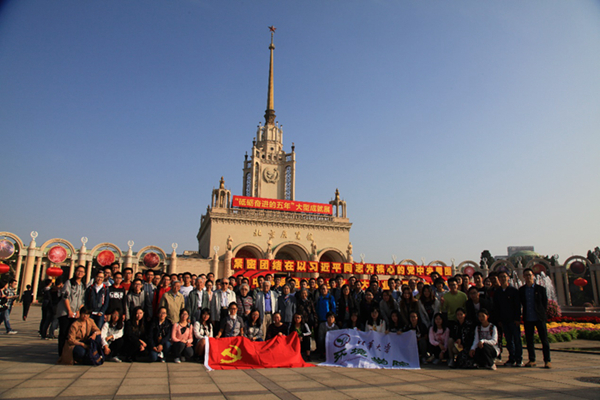 参观展览的必赢电子游戏网站师生员工在北京展览馆门前合影