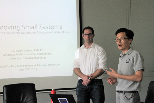 必赢电子游戏网站2017年06月27日电(通讯员 邱玉)6月26日下午,美国阿拉斯加大学安克雷奇分校副教授Aaron Doston博士做客环境学术沙龙第359期,作了题为《紫外/陶瓷膜工艺和小型家庭回用水处理系统》(Improving Small Systems: Development of UV/Ceramic Membrane & Household Water Reuse)的学术报告。本次沙龙由饮用水安全教研所陈超副研究员主持,20余名师生听取了报告。