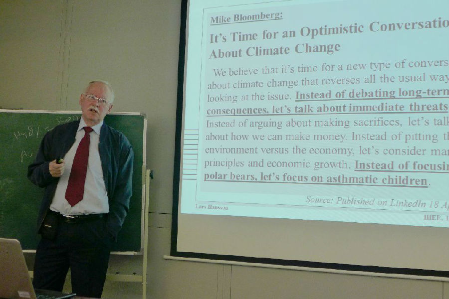 必赢电子游戏网站2017年4月27日电?(通讯员 李霄)4月27日上午,瑞典隆德大学国际产业环境经济研究院(International Institute for Industrial Environmental Economics,IIIEE)教授拉尔斯·汉森(Lars Hansson)做客环境学术沙龙第335期,作了题为《环境政策和空气污染的经济学分析》(Economic Analyses of Environmental Policy and Air Pollution)的学术报告。本次沙龙由环境管理与政策教研所石磊副研究员主持,40余名师生听取了报告。