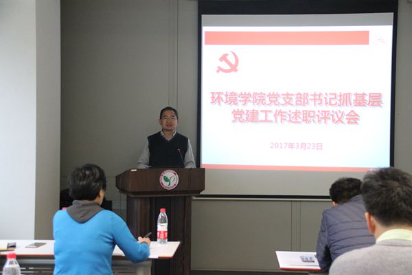 会上,刘毅首先发言,强调党支部书记述职评议会是“两学一做”学习教育的重要内容,并阐述了评议会的重要意义和基本要求。院内7个教工党支部、4个本科生党支部和19个研究生党支部的书记重点围绕2016年开展“两学一做”学习教育、履行抓好党支部建设的职责等内容,并结合支委会和支部工作的评议情况及党员群众反馈意见,进行述职。每个汇报结束后,与会代表进行提问,现场交流充分、热烈。述职会还邀请原环境系首任系主任井文涌,原系党委书记陆正禹、李振瑜进行总结点评。与会代表现场填写考核测评表。