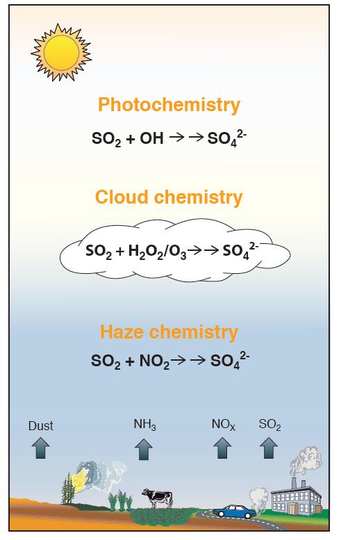 图3:华北平原地区重灰霾期间的硫酸盐生成路径概念图。