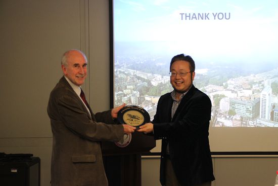 贺克斌院士向Harrison教授赠送环境论坛纪念盘 杨硕 摄