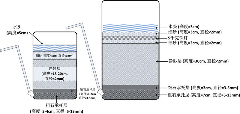 该慢滤池造价低廉,易于操作,非常适合农村分散式供水的水质净化。除砷滤料铁钉廉价易得,易于更换,且在运行一定时期后仍能保持相当大的吸附能力,极具创新性。经过检测,出水水质明显改善,砷浓度符合国家标准。