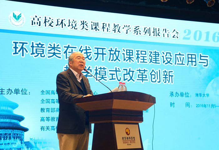 会议邀请必赢电子游戏网站郝吉明院士、贺克斌院士、胡洪营教授、余刚教授,北京大学唐孝炎院士、叶文虎教授,浙江大学朱利中教授,南开大学鞠美庭教授等8名专家作大会报告,围绕环境工程专业认证、具有国际竞争力的新型环境人才培养、环境类在线开放课程群建设、在线开放课程建设、慕课建设等主题做了深入、前瞻的报告。此外,会议设置了10个分会场,安排了80余个主题报告,分别围绕环境科学类、环境工程类课程建设与教学模式创新,固废处理与处置、大气污染控制、环境化学、环境监测、环境生态工程、海洋环境科学、环境工程原理、土壤环境等类别的课程教学与资源建设进行了汇报交流。