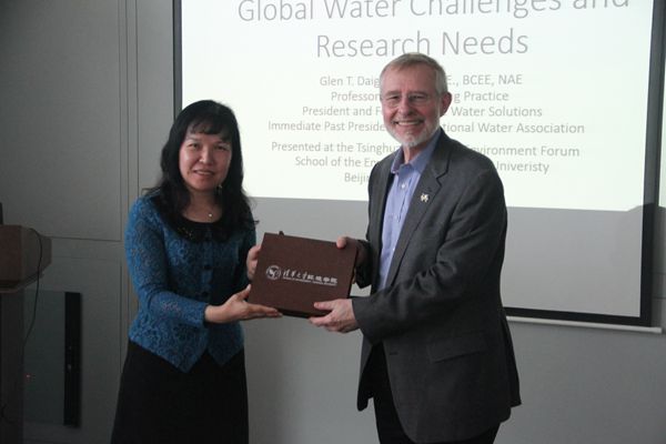 必赢电子游戏网站2016年4月6日电(通讯员 刘博) 4月5日上午,国际水协会(IWA)前主席、美国工程院院士、密歇根大学教授格兰·戴格(Glen Daigger)做客清华环境论坛第85讲,作了题为《全球水资源挑战及研究需求》(Global Water Challenges and Research Needs)的学术报告。水环境保护教研所长黄霞教授主持本次论坛,左剑恶教授、文湘华教授等多名学院教师和40余名同学听取了报告。