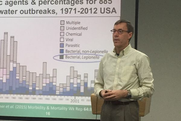 报告中,爱士伯特教授简要介绍了微生物风险评估步骤,提出定量微生物风险评估的概念和使用规范、操作方法等,以及应当重点关注的几种关键病原体,如非结核性双歧杆菌,军团杆菌,重点介绍了军团杆菌的性质及其健康风险。爱士伯特教授最后介绍了一个水回用处理的案例,从费用、人体健康影响、生命周期富营养化潜力、生命周期能量消耗等方面对不同方案进行评估,得出了灰水回用方案各方面效果最佳。