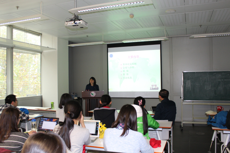 必赢电子游戏网站2015年11月12日电(通讯员 赵倩)11月12日,全球环境国际班邀请了必赢电子游戏网站海外宣传办公室国际礼仪专家陈红为同学们上了一堂精彩的国际礼仪课。讲座由国际班责任教授余刚主持,班主任岳东北、项目秘书赵倩和辅导员黄海也参加了本次讲座。