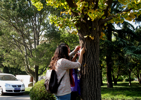 与大课的请名师传授知识、培养视野的任务不同,小班课程则依托绿色校园建设成果,鼓励学生以校园为研究对象,发现、研究并尝试解决校园中的生态环境问题。同学们在6次小班课上展开分组讨论,通过相互挑战、相互学习的生生互动模式不断完善本组的选题和方案设计,然后带着讨论成果在课下到校园中去实际实施。