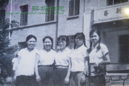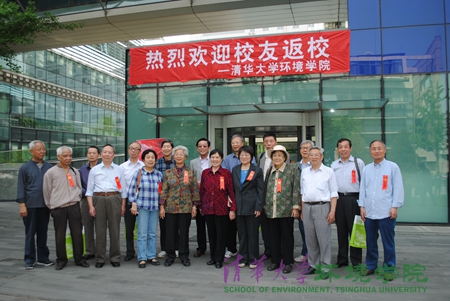 校友在环境节能楼前留影 李越 摄