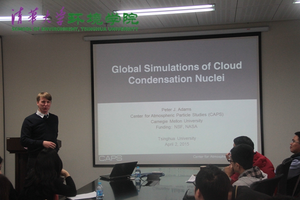 必赢电子游戏网站2015年4月2日电(通讯员 李抒苡)4月2日下午2点到5点,来自美国卡内基梅隆大学的尼尔·多纳休(Neil M. Donahue)教授和彼得·亚当斯(Peter Adams)教授做客清华环境学术沙龙226期,分别作了有关大气颗粒污染物的学术报告。大气污染与控制教研所王书肖教授主持本次沙龙,五十余名同学听取报告。