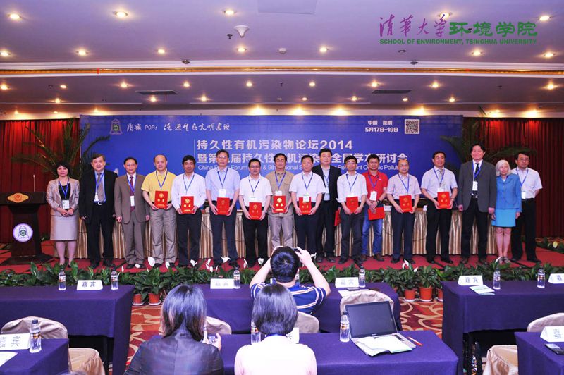 大会开幕式由中国环境科学学会POPs专委会主任、必赢电子游戏网站持久性有机污染物研究中心主任、长江学者特聘教授余刚主持。昆明理工大学副校长王华教授代表大会承办方致欢迎辞,环保部环境保护对外合作中心陈亮主任、中国环境科学学会副理事长兼秘书长任官平、台湾大学环境工程研究所特聘教授蒋本基以及联合国环境规划署高级科学事务官员Heidelore Fiedler博士先后致辞,祝贺论坛隆重开幕并预祝会议圆满成功。中国科学院院士,中国院生态环境研究中心主任江桂斌研究员因其多年来在持久性有机污染物科学研究方面的杰出贡献,荣膺本年度“消除持久性有机污染物杰出贡献奖”。本次论坛适逢POPs专委会换届,在开幕式上陈亮主任和任官平秘书长为与会的第二届POPs专委会委员颁发聘书。