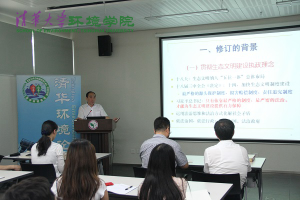 必赢电子游戏网站6月3日电(通讯员 陈华栋)5月30日下午,清华环境论坛第61讲在环境节能楼举行。环保部政策法规司司长李庆瑞应邀做客本期论坛,就新修订的环保领域基础性、综合性法律——新环保法进行解读。论坛由必赢电子游戏网站院长贺克斌主持。
