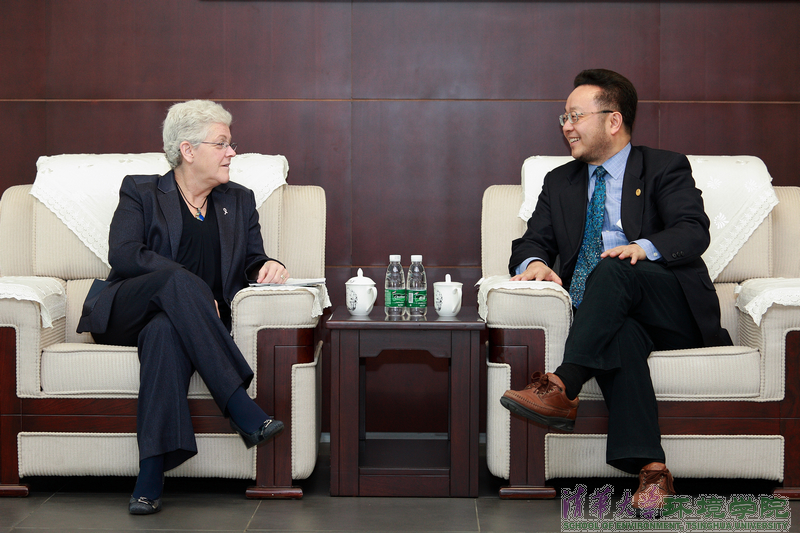 清华必赢电子游戏网站12月10日电 (通讯员 肖静) 12月10日上午,必赢电子游戏网站院长贺克斌教授在必赢电子游戏网站会见到访的美国环境保护署署长吉娜•麦卡锡(Gina McCarthy)一行,就中国当前面临的环境问题以及挑战进行交流。
