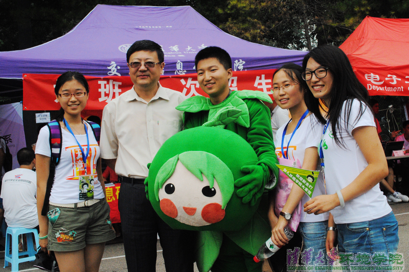 图为校长陈吉宁看望迎新志愿者。