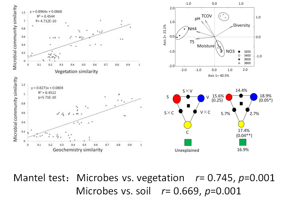青藏高原微生物群落结构与环境因子之间的强烈关联。