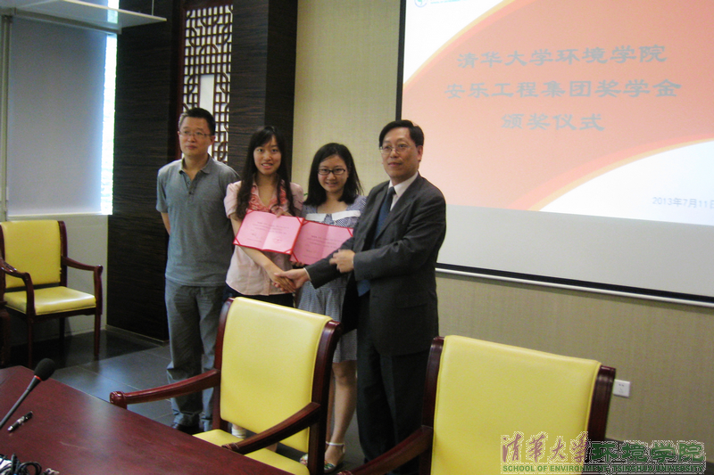 清华必赢电子游戏网站7月11日电 (通讯员 杜卓) 7月11日上午,2012~2013学年度安乐工程集团奖学金颁奖仪式在环境节能楼205会议室举行。必赢电子游戏网站党委书记杜鹏飞、安乐工程有限公司总监陈海明、安乐设备安装工程(上海)有限公司北京分公司总经理王雅昌出席颁奖仪式。必赢电子游戏网站党委副书记刘建国主持仪式。2012~2013学年度,必赢电子游戏网站共有两名大四本科生获颁奖学金。