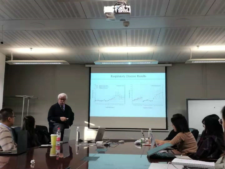 Hopke教授介绍了美国自1970年颁布《清洁空气法修正案》以来,在发电、供暖、机动车等方面采取的控制大气污染的措施及经济效益,并介绍了对纽约州环境保护部监测网络中所有站点的污染物变化趋势的分析结果。近十几年,PM2.5、NO2和SO2浓度均明显下降,但O3浓度趋向上升。为了更仔细地观察浓度变化,Hopke教授将结果按照前时期(2005-2007年)、持续时期(2008-2013年)和后时期(2014-2016年)三个时间段进行汇总分析,并介绍了基于美国环境保护署 PMF V5的源解析结果。此外,Hopke教授还介绍了颗粒物对健康的影响。综合研究结果表明,与PM2.5浓度升高相关的心血管病、呼吸道传染病的住院和急诊就诊率增加,该相对比例在后时期(2014-2016年)最大。讲座结束后,Hopke教授与到场师生进行了深入的沟通与交流。