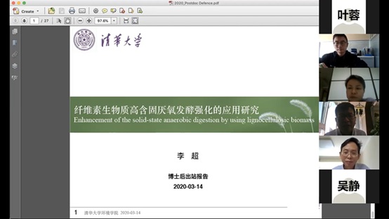 答辩评审会上,首先由合作导师陆文静副教授介绍了李超博士的简历。接着,李超本人报告了两年来的科研工作成果,报告主题是“纤维素生物质高含固厌氧发酵强化的应用研究”。随后,各位评审专家依次对李超进行提问,李超围绕实验设计、微生物结果分析、研究创新性以及出站报告中的问题等话题展开回答。提问回答环节结束后,评审小组成员针对李超的科研工作表现进行闭门讨论,对其博士后在站期间的科研能力、学术水平等方面表示了肯定和认可,一致决定评为优秀。讨论会后,评审组长吴静研究员向重新进入线上会议的李超博士宣读了评审意见。最后,李超向各位评审专家对他的认可表示了衷心的感谢。