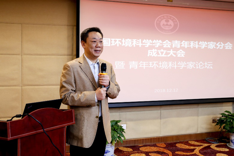 中国环境科学学会青年科学家分会首任主任刘毅教授主持会议