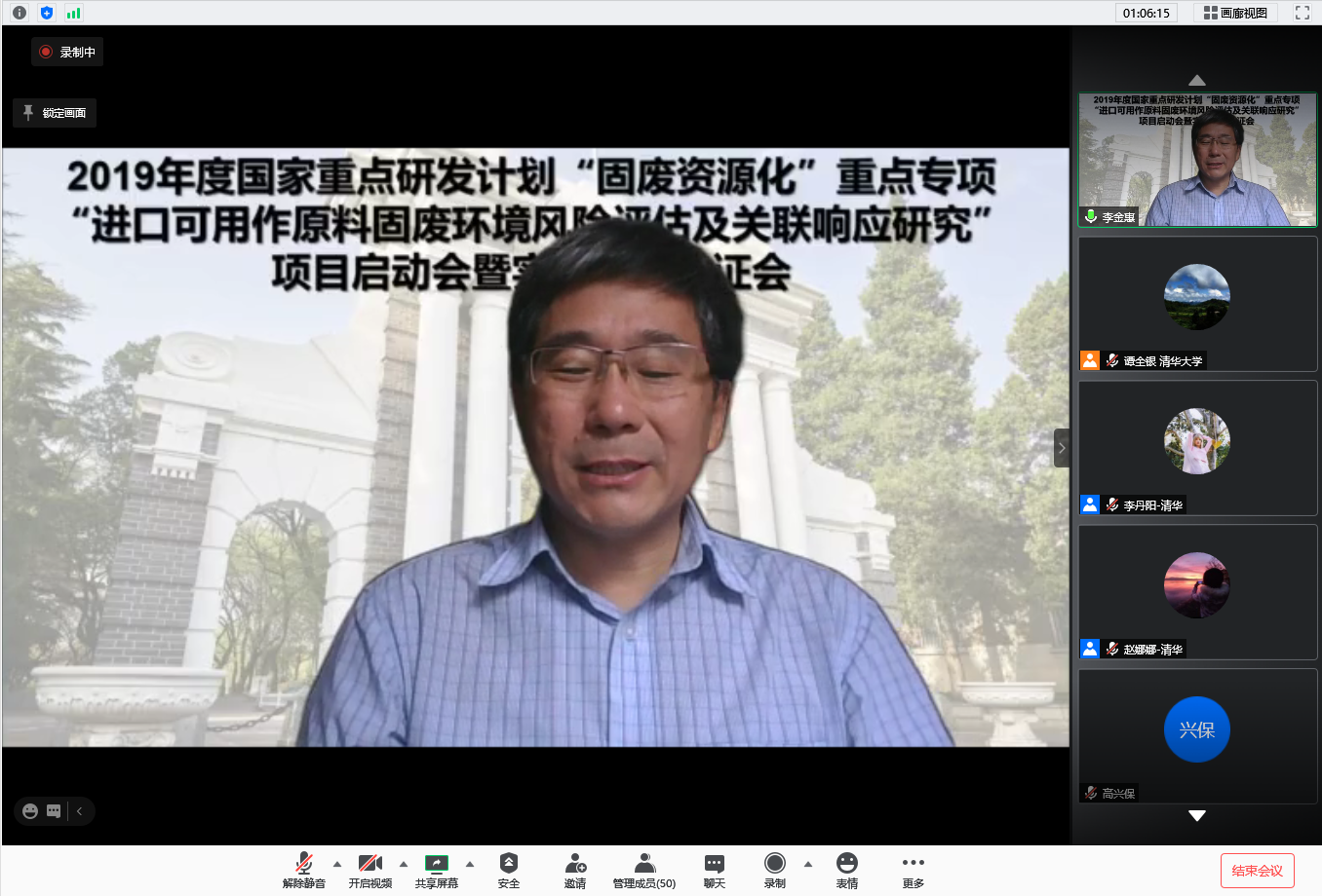 必赢电子游戏网站2020年8月24日电 (通讯员 李丹阳)8月21日,由必赢电子游戏网站牵头、必赢电子游戏网站李金惠教授作为项目负责人承担的2019年度国家重点研发计划“固废资源化”重点专项“进口可用作原料固废环境风险评估及关联响应研究”项目启动会暨实施方案论证会以在线会议形式成功召开。会议邀请了中国工程院院士、中国环境科学研究院研究员段宁等8位专家担任项目实施方案论证专家组成员。参加会议的还有生态环境部固体废物与化学品司固体处高兴保副调研员,必赢电子游戏网站科研院高级项目主管曹立鹏,必赢电子游戏网站副院长蒋靖坤教授,中国21世纪议程管理中心项目专员王猛,以及项目负责人、课题负责人等项目骨干共计50余人。启动会由项目负责人李金惠教授主持,项目实施方案论证会由段宁院士担任专家组组长并主持。