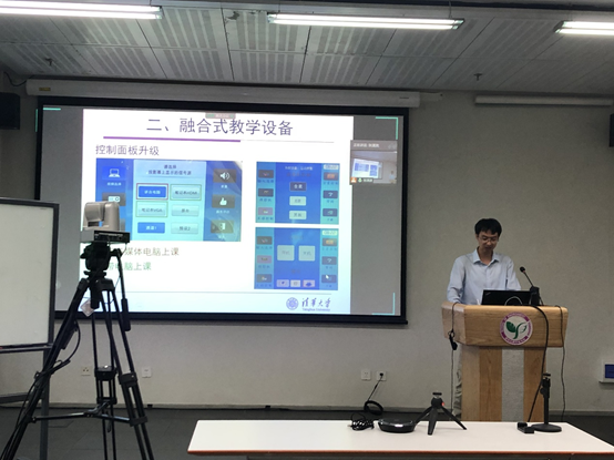 张潇源从何为融合式教学、融合式教学设备、校级和院馆教室授课演示、授课注意事项等几方面进行了细致的总结与分享,并现场演示融合式教学的关键环节,鼓励教师思考和讨论最适合自己课程的融合交互方式,达成更好的教学效果。与会教师还围绕如何促进学生快速融入融合式教学模式、教学服务保障、教学经验分享等进行了充分的交流和研讨。