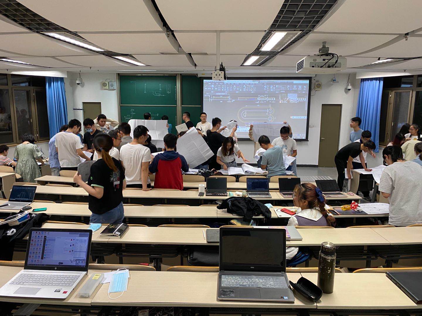随着新学期同学们陆续返校,《水处理工程设计》也由完全线上模式转变为线下与线上融合。新学期课程主要以各小组水处理设计项目的进度检查和答疑为主。今晚的课程中老师首先对往届课程优秀设计项目和市政院实际项目的设计图纸进行了讲解,然后分别检查几个小组的设计进度并为组员们解答设计过程中的疑问。