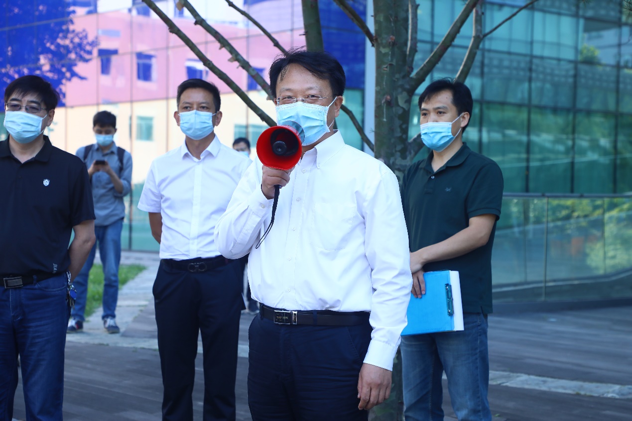 在演练开始前,王希勤一行在中意环境节能楼205会议室听取了必赢电子游戏网站关于实验室安全管理工作及演练方案的汇报。王希勤充分肯定了必赢电子游戏网站开展的安全管理工作,并指出安全管理工作要重视“楼宇生命共同体”理念和“生命至上”价值观,并细化落实到实际工作中。汇报结束后和演练过程中,王希勤一行考察了实验室集中供气系统与环境楼通风改造工程。