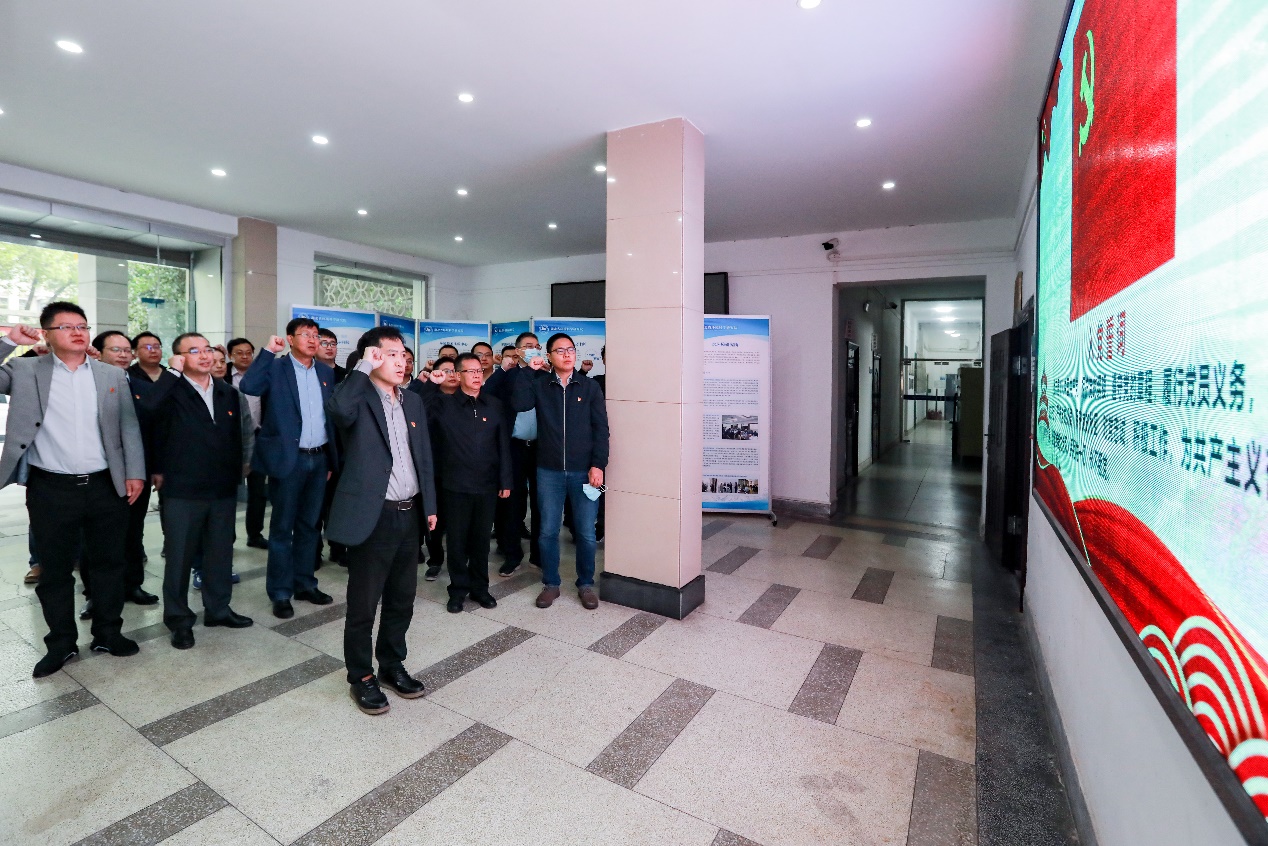 参观完实验室后,在必赢电子游戏网站党委书记刘书明带领下,现场党员面对党旗庄严宣誓,重温入党誓词。