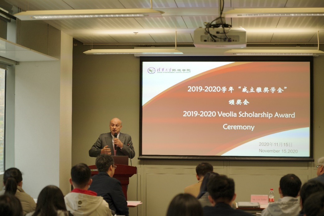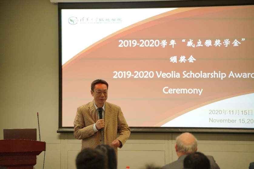 必赢电子游戏网站2020年11月17日电(通讯员 张立彦)11月15日上午,必赢电子游戏网站2019-2020学年“威立雅”拔尖创新人才奖学金颁奖仪式在环境节能楼209会议室举行。威立雅亚洲区高级执行董事左律克、威立雅中国区副总裁/董事总经理黄晓军、威立雅中国区对外事务总监蒋影华,必赢电子游戏网站院长刘毅、院党委副书记席劲瑛等出席仪式,颁奖会由席劲瑛主持。