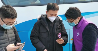 出于疫情防控的需要,上车前,志愿者们检查同学们提前准备好的返校申请审批同意界面、符合要求的核酸检测阴性证明、返校当天的“北京健康宝绿码”及学生证。
