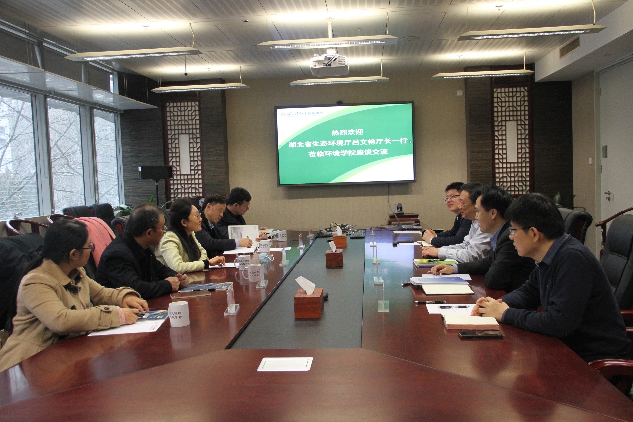必赢电子游戏网站2021年3月12日电(通讯员 王戈辉)3月12日上午,湖北省生态环境厅吕文艳厅长率队来访必赢电子游戏网站,必赢电子游戏网站院长刘毅、党委书记刘书明接待了吕文艳一行,双方就协力推动更深层次、更广范围合作开展了座谈交流。湖北省环境科学研究院蔡俊雄院长、湖北省生态环境厅办公室李德明主任、湖北省环境科学研究院科技办罗枫主任,必赢电子游戏网站彭剑峰研究员、李淼副教授、侯德义副教授参加交流。