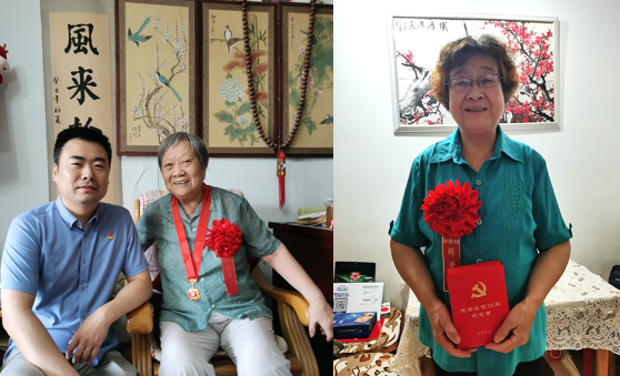 “七一”前夕,学院党委组织开展了老党员慰问活动,支部代表参加了部分慰问活动,向机关党支部因身体原因未能出席学校“光荣在党50年”纪念章颁授仪式的张桂芳、韩荣翠老师敬献纪念章。两位老党员激动万分,表示一代人有一代人的使命,教导我们要时刻保持爱国、爱党的初心,继续传承和发扬中国共产党人的光荣传统。