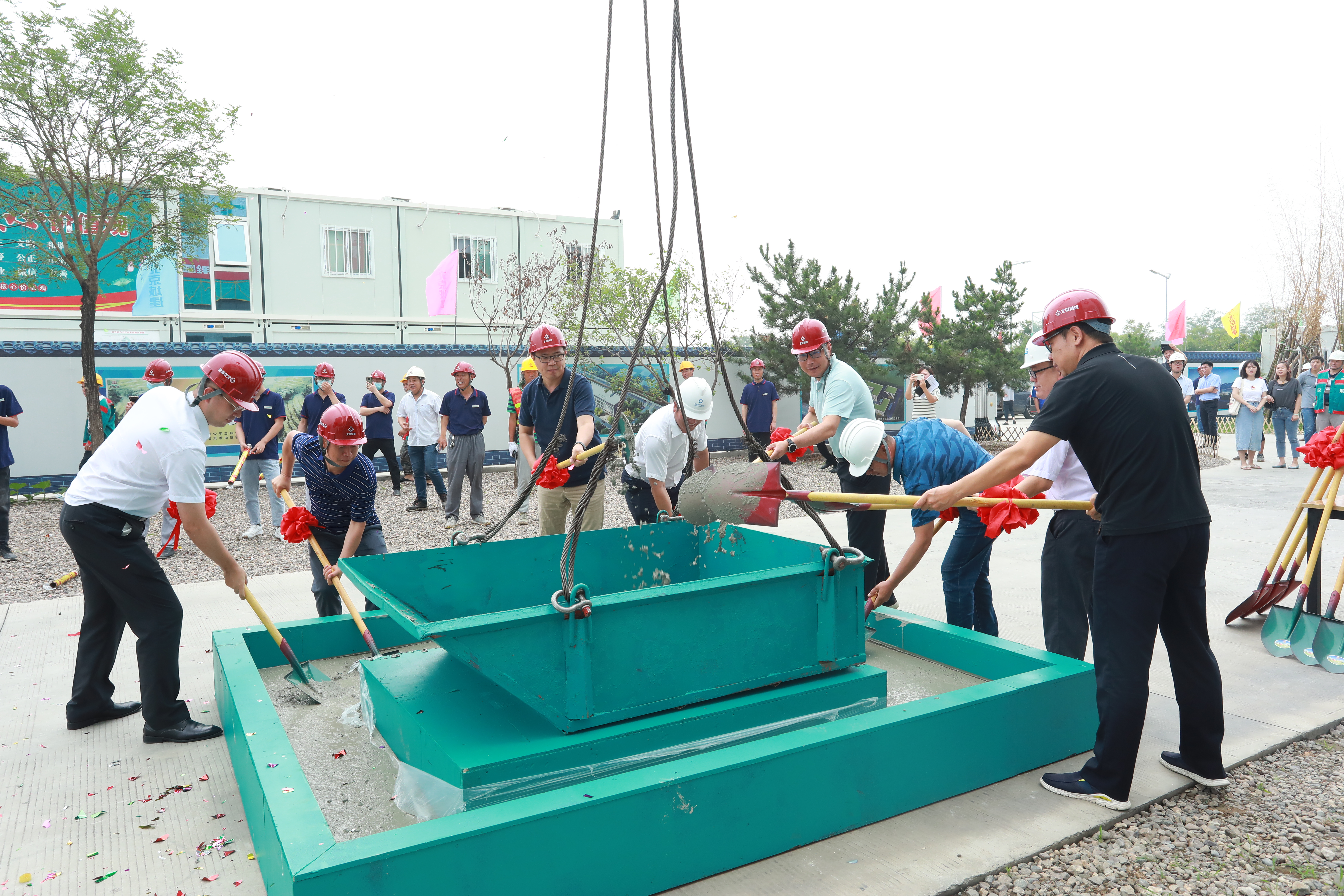 参加平台主体结构封顶仪式的代表集体铲砼