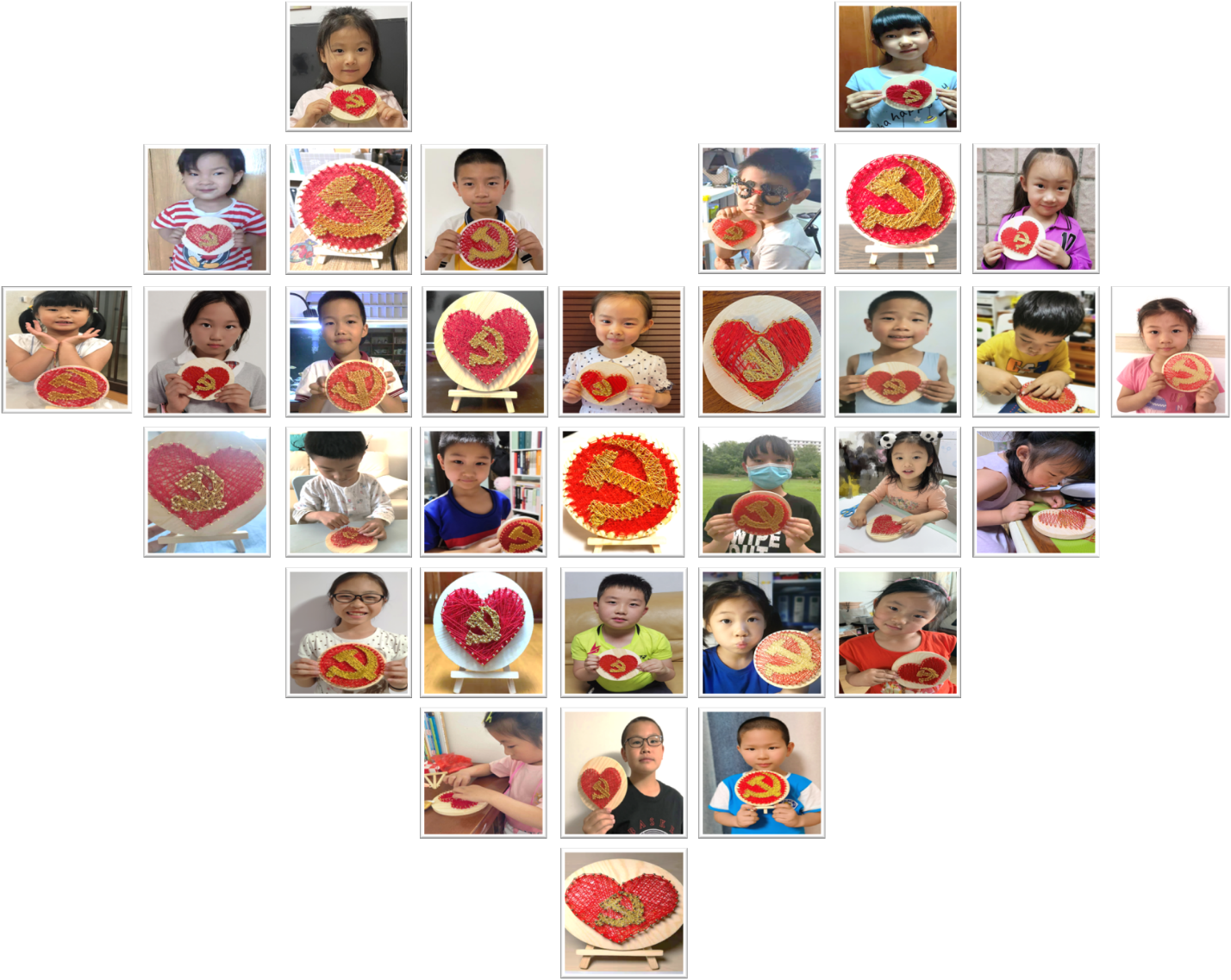在作品制作过程中,通过合作不仅增进了亲子关系,也使小朋友认识了党徽的组成元素及所代表的含义,学会了《没有共产党就没有新中国》这首红歌,了解了中国共产党建设新中国的丰功伟绩,培养了坚持不懈的精神,受到了一心向党的教育。