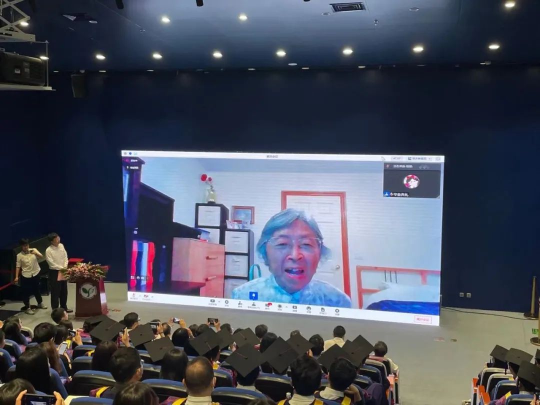 受疫情影响身处国外的钱易院士在线上为毕业生寄语,祝贺同学们顺利完成学业取得学位,并提出殷切期待。她希望全体毕业生牢记“学无止境”,毕业是开启人生新的阶段,不论去向何方,都要坚守自己为国家、为人类、为事业、为未来奉献不止的初心,永远追求真善美,也不忘常回母校看看。