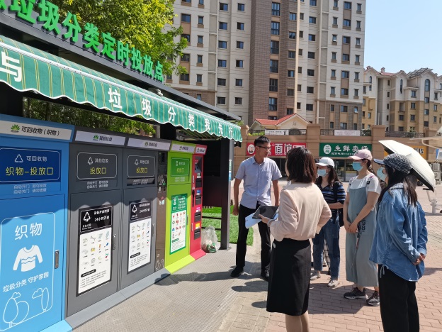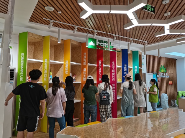 6月21日,同学们首先来到生态城环卫科技体验馆,整体了解了生态城环卫运营模式。随后,大家来到生态城垃圾分类精品示范小区——季景兰庭,参观了生态城智慧垃圾分类定时投放点和垃圾气力输送投放点,了解了垃圾分类投放、分类收集运输、居民参与情况。最后,同学们来到生态城智慧中心,参观了“无废城市”信息化管理平台。通过参观调研,同学们发现,将智慧手段融入生态文明建设,可大大提高监管效率,推进城市固体废物精细化管理进程。