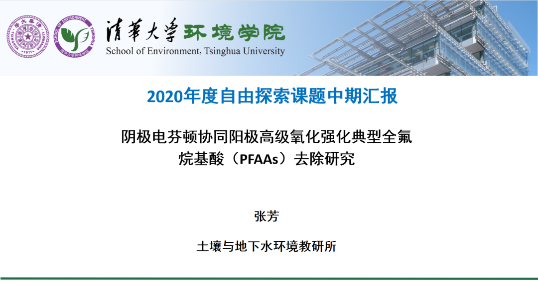 张芳以“阴极电芬顿协同阳极高级氧化强化典型全氟烷基酸(PFAAs)去除研究”为题介绍课题研究进展。课题旨在开展阴极电芬顿协同阳极氧化全氟烷基酸类物质研究,实现对全氟烷基酸类物质强化矿化,阐明阴极电芬顿协同阳极高级氧化降解机理,探讨污染物特征结构与降解行为间的关系,为提高系统降解能力提供理论依据。目前,研究人员已完成实验系统设计及搭建,初步探讨了阴极电芬顿对PFAA降解的强化作用,并提出了一些阶段性理论。后期,研究人员将进一步阐明阴极电芬顿协同阳极高级氧化降解机理,探讨污染物特征结构与降解行为间的关系,为提高系统降解能力提供理论依据。