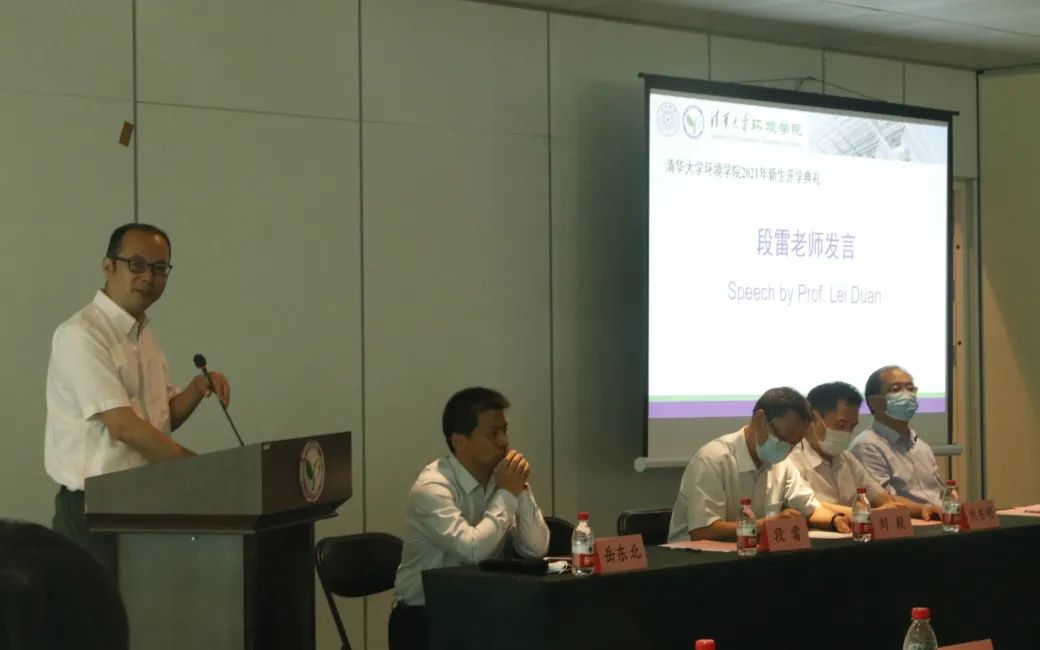 大气污染与控制教研所所长段雷作为教师代表发言。他祝贺同学们进入必赢电子游戏网站学习,并与新生分享了自己三十年前的求学生涯。他回忆了读博期间郝吉明老师对自己的言传身教,希望同学们勤勤勉勉做研究,建议同学们积极与优秀的学长和学姐交流学习、互相促进,鼓励环境学子立足国家需求,在“双碳”目标、气候变化等时代议题下,找到有意义、有突破性的研究领域,并能始终热爱与坚守,一起“为祖国健康工作五十年”。