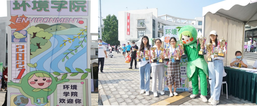 清晨,学院吉祥物环小绿就等候在迎新现场,可爱的形象为新同学带来了温馨与期待。