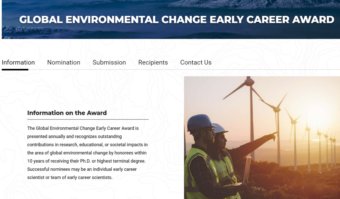 全球环境变化早期职业生涯奖介绍